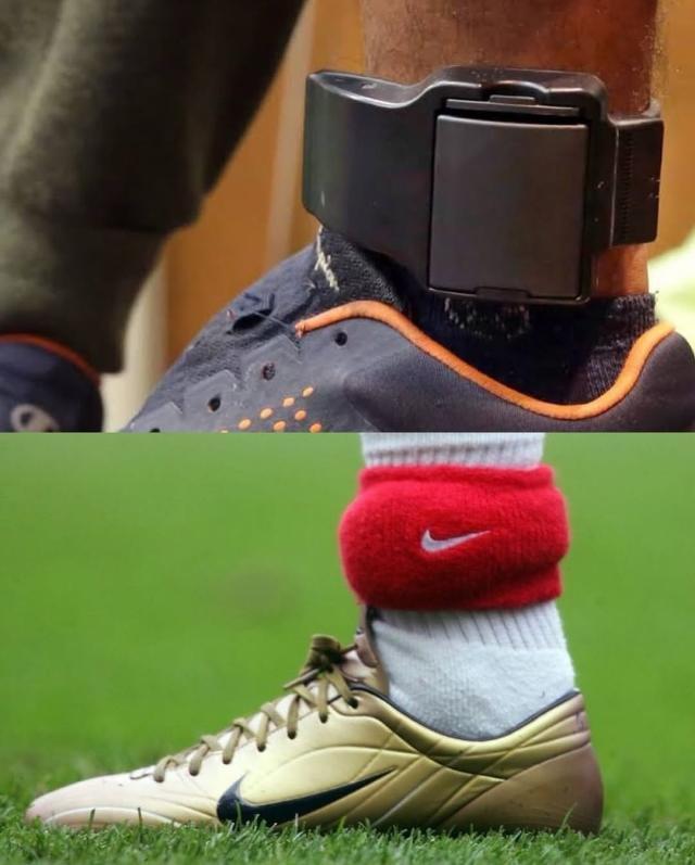 尤里·德·卡瓦略,30岁,现在遵循里约热内卢州第四级联赛(B2)球队戈伊塔卡斯,司职要紧型中场。上周日,在戈伊塔卡斯作念客马卡埃的B2联赛决赛首回合比赛中,身披18号球衣的尤里不才半场第25分钟替补出场,有媒体提防到,尤里的左脚球袜里有一个较大的特出,昭彰是包裹着什么东西。尤里的袜子里藏的既不是扳手,也不是锤子,而是一个带有定位安装的电子脚镣。