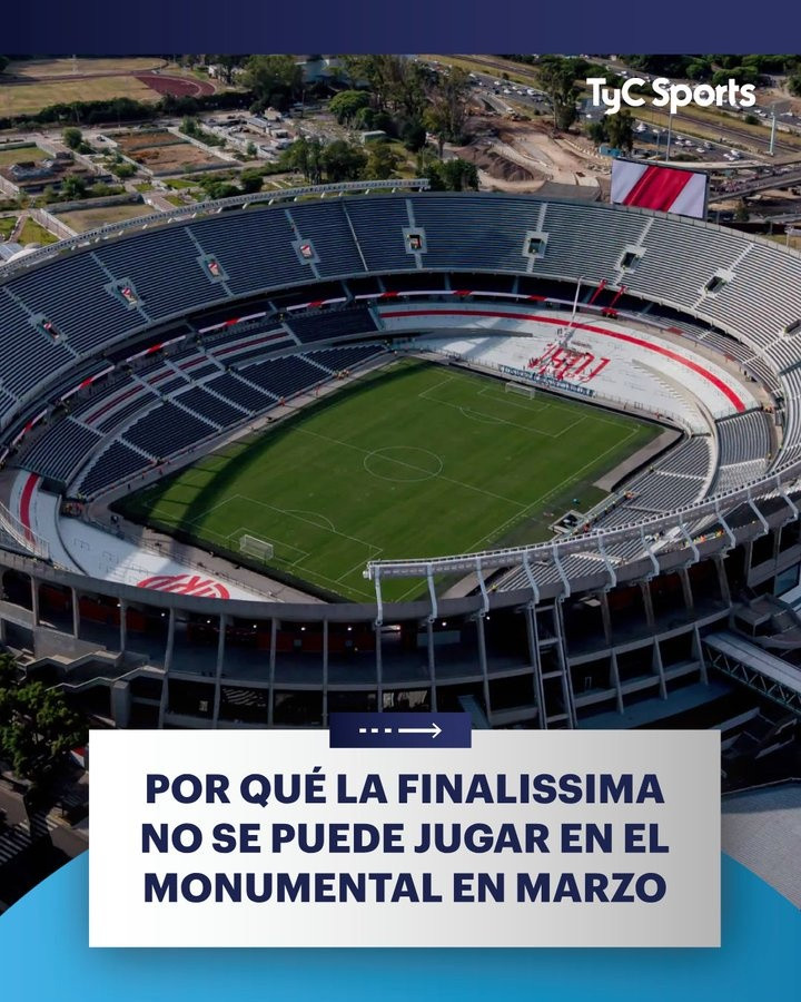 TYC指出,尽管阿根廷足协主席塔皮亚提倡在记念碑球场举办泰西杯,但日程存在突破,AC/DC乐队将于3月23日、27日、31日在记念碑球场举办三场演唱会。